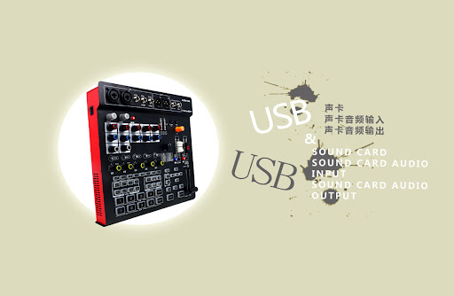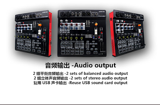 Nguồn tần số âm thanh NSTANT, 3 bộ đầu vào âm thanh stereo / 6 kênh mono, nguồn đầu vào âm thanh công tắc, reuse đầu vào thẻ âm thanh USB, 2 điều chỉnh cân bằng âm thanh, điều chỉnh âm lượng kênh.