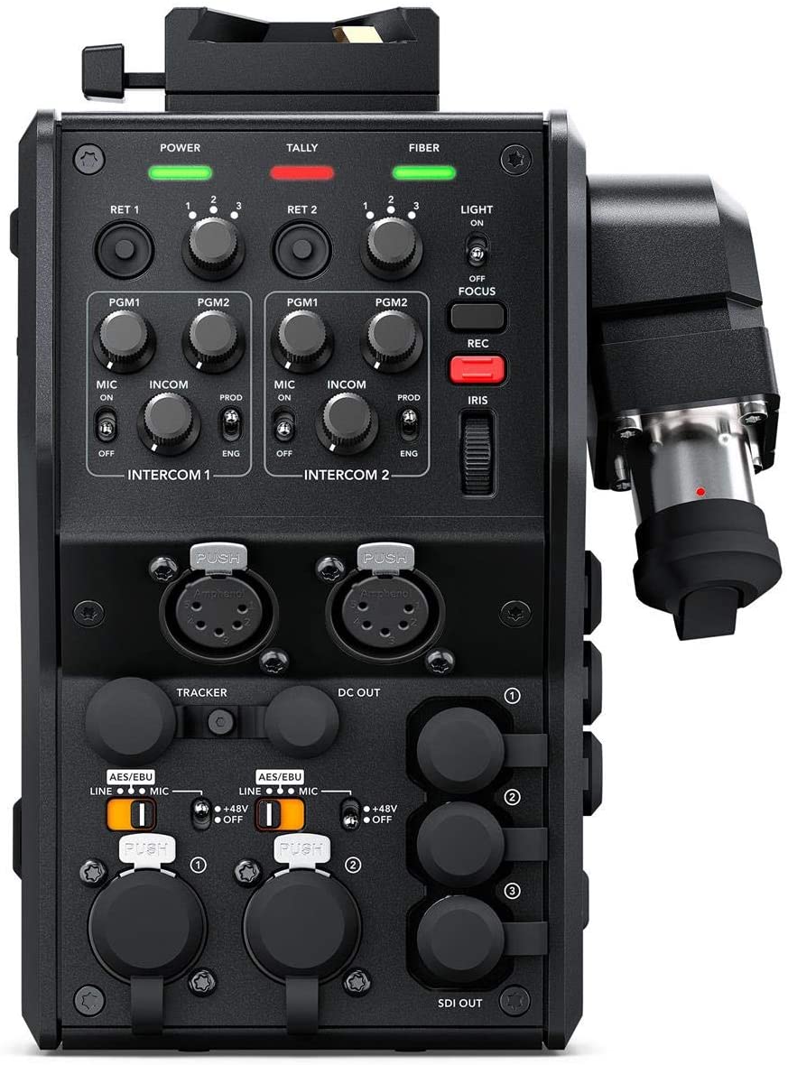 Các máy quay studio thường được điều khiển từ phía sau, nhưng các máy quay truyền hình thì lại thường được bố trí hệ thống nút điều khiển bên ngoài thân máy. Để khắc phục vấn đề này, Blackmagic Camera Fiber Converter bổ sung hỗ trợ SMPTE fiber cho máy quay cùng với một loạt các điều khiển và tính năng vào phía sau máy quay, biến máy quay truyền hình thành máy quay studio hoàn hảo, chuyên nghiệp. Bạn sẽ có 2 kết nối truyền hình tiêu chuẩn 5 pin talkback connection riêng biệt, 3 return video feed, 2 extra audio input, các kết nối cho PTZ và tracker, ngoài ra còn có các DC và D-tap output để cấp nguồn cho phụ kiện máy quay. Với tất cả các điều khiển bổ sung này được thêm vào phía sau của máy quay, bạn có thể điều khiển máy quay theo phong các studio truyền thống.