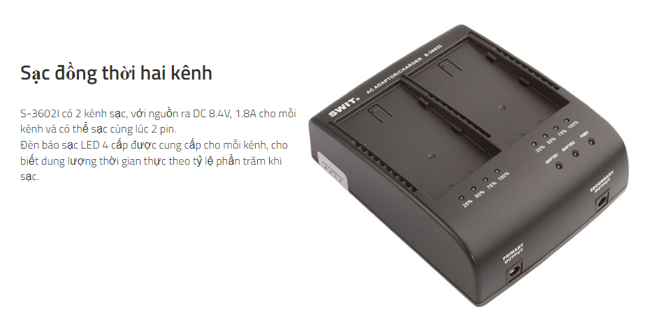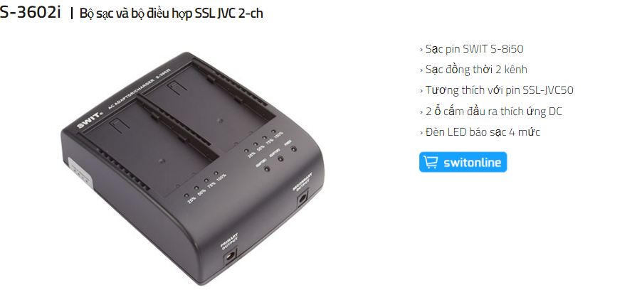 - Bộ sạc 2-ch-mount Swit S-3602I
