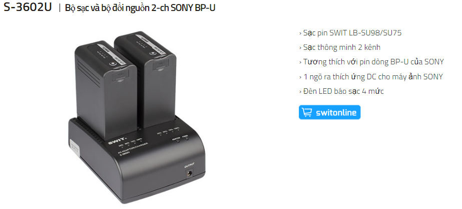 - Bộ sạc 2-ch V-mount S-3602U| Pin Máy Ảnh