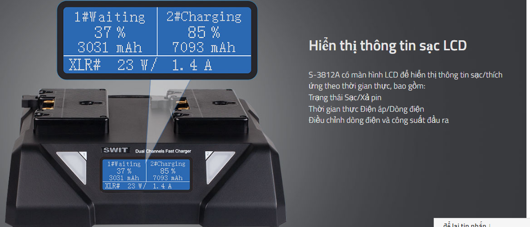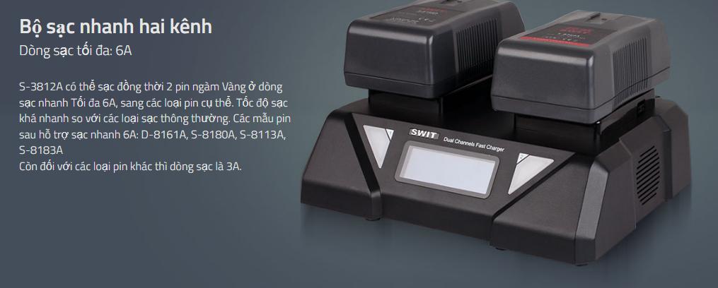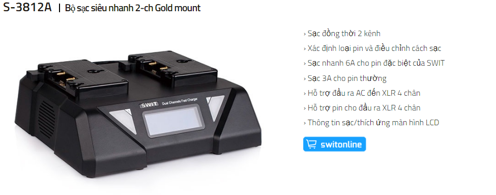 - Bộ sạc siêu nhanh 2-ch GOLD-mount Swit S-3812A