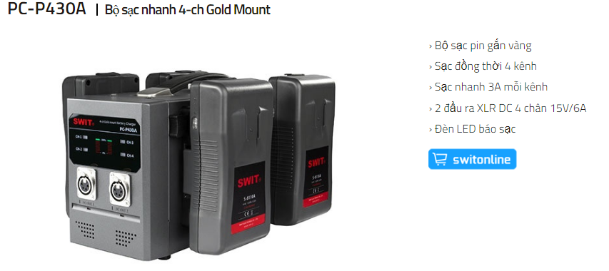 - Bộ sạc siêu nhanh 4-ch GOLD-mount Swit PC-P430A