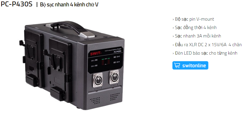 - Bộ sạc siêu nhanh 4-ch V-mount Swit PC-P430S