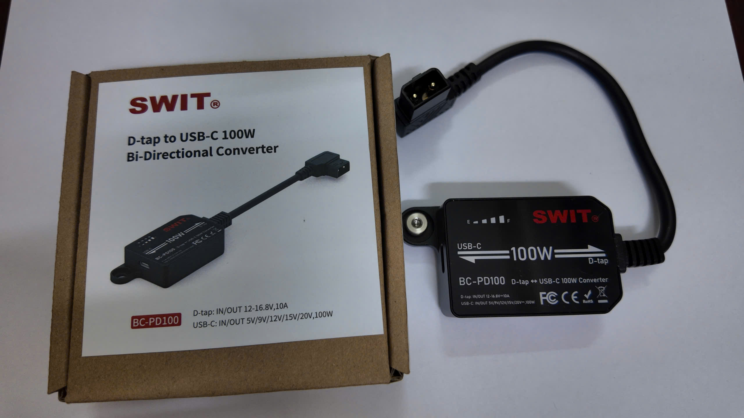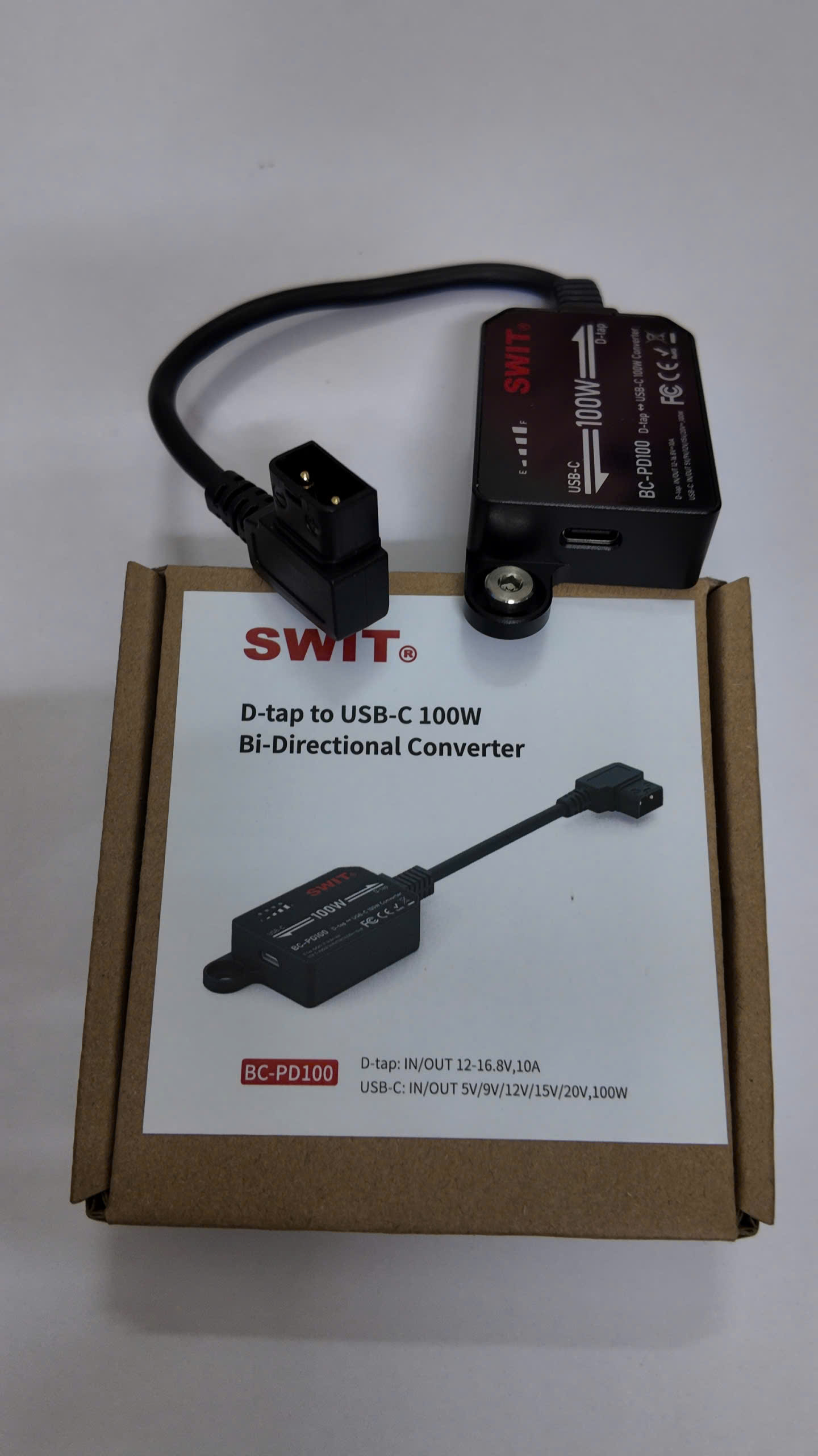 SWIT BC-PD100 là bộ chuyển đổi hai chiều D-tap sang USB-C, cho phép nâng cấp bất kỳ loại pin máy ảnh nào có cổng D-tap lên giao diện USB-C hai chiều, hỗ trợ công suất cao liên tục PD 100W.