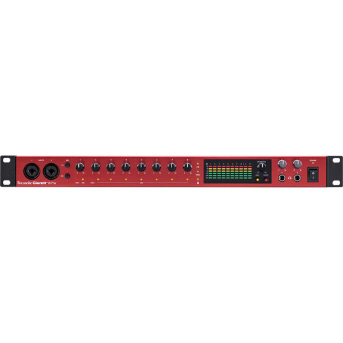 In addition to the eight mic/line preamps (two with Hi-Z capability), the interface offers ADAT and S/PDIF I/O for digital input and output expansion, MIDI I/O for integration of MIDI equipment such as a keyboard or drum machine, and a BNC wordclock output for syncing other digital gear. Stereo monitor outputs, two headphone outs, and eight line outputs let you properly hook up monitors, headphones, and outboard processors. The Clarett+ 8Pre includes a software package featuring Focusrite Red plug-ins and a channel strip that accurately models the rare Focusrite Studio Console. Also provided is the Focusrite Control software that enables you to configure routing and monitor mixes from Mac and Windows computers, or iPad, iPhone, and iPod touch mobile devices.