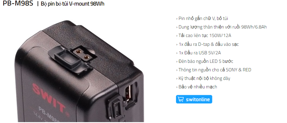 - PIn Máy Quay B-mount Swit PB-M98S