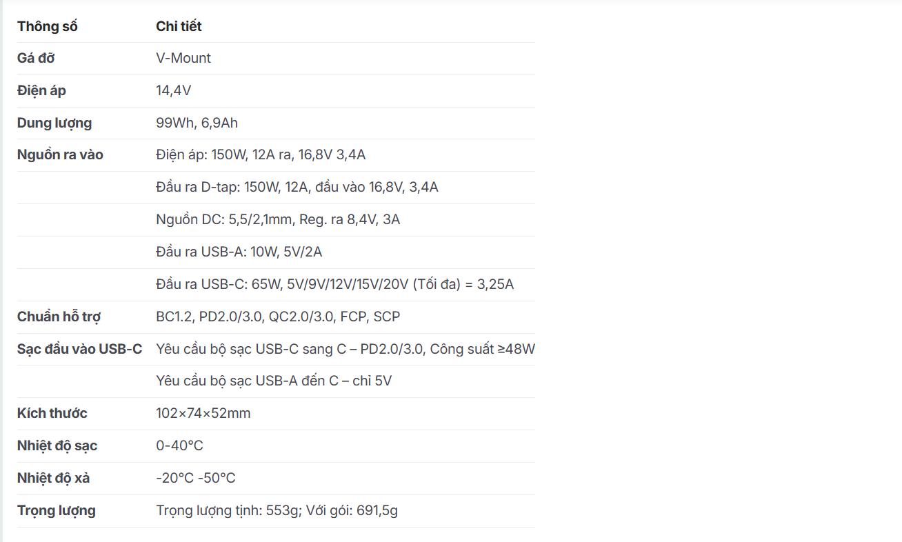 Pin V-Mount nhỏ gọn đáp ứng mọi nhu cầu của bạn