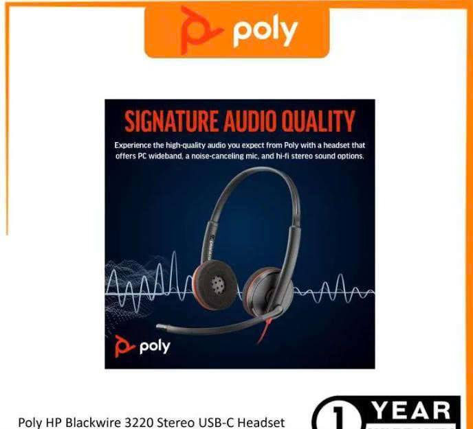 - Tai nghe HP/ Poly Blackwire 3220 Stereo USB-C Headset +USB-C/A Adapter (8X228AA)